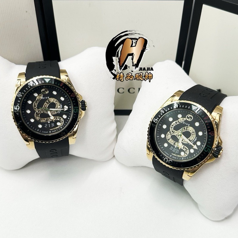 GUCCI DIVE金黑金蛇 陶瓷圈 黑面盤 腕錶YA136219