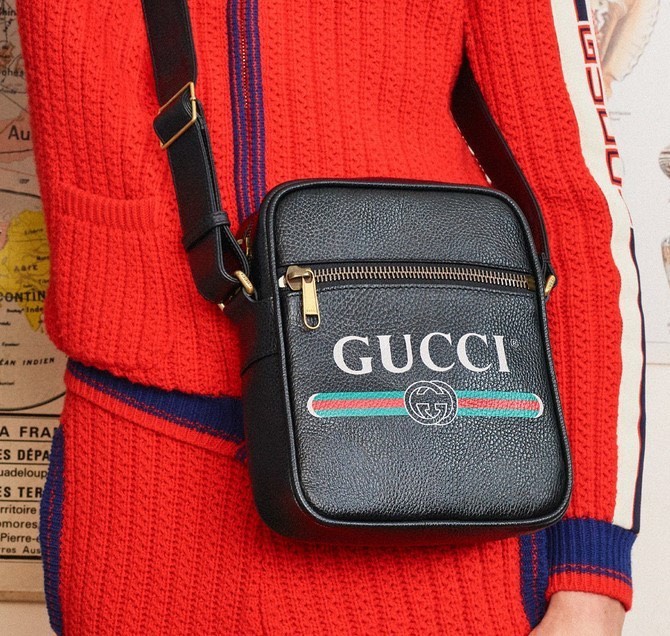 GUCCI 經典緞帶Logo 荔枝皮革 黑色 側背包 郵差包✅正品代購