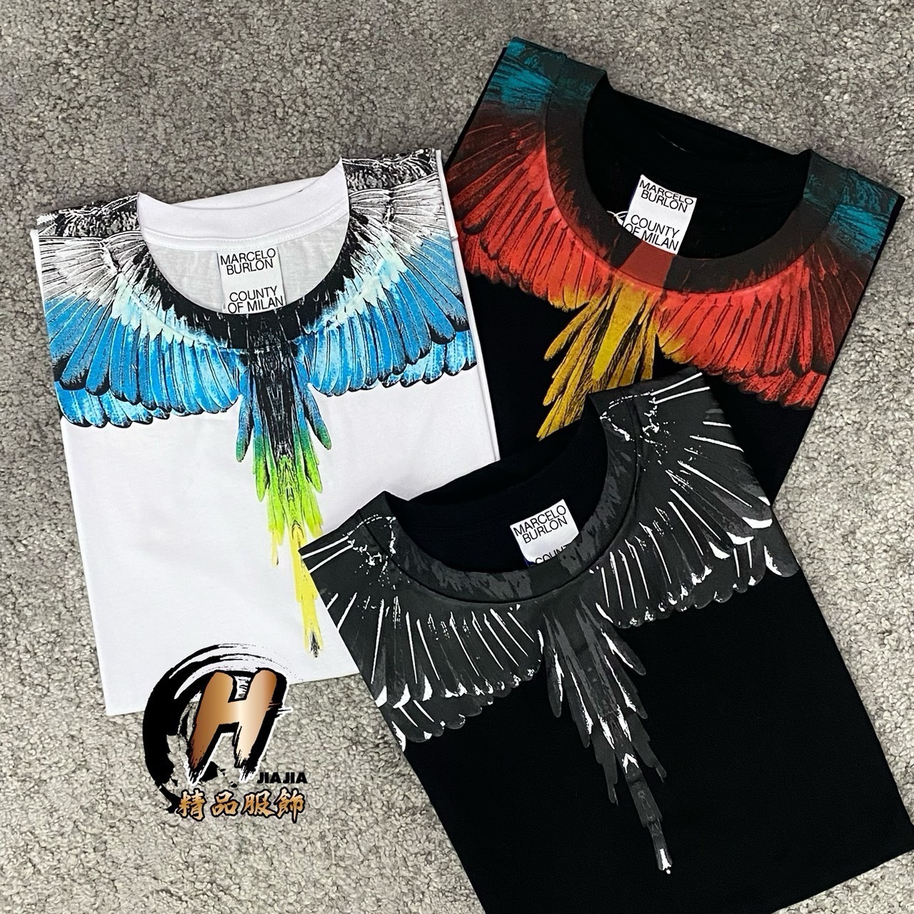 MARCELO BURLON MB 經典漸層羽毛 翅膀 天堂鳥 黑/白 短袖