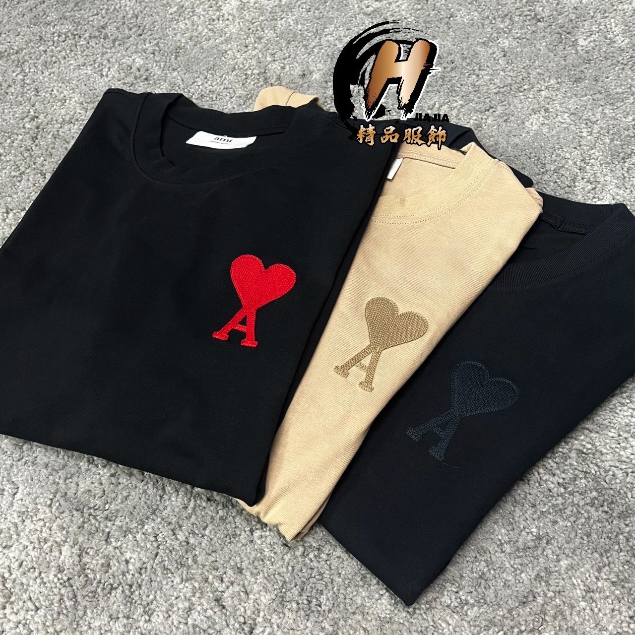 AMI PARIS 經典刺繡小標 愛心 黑色/卡其 短袖✅正品代購