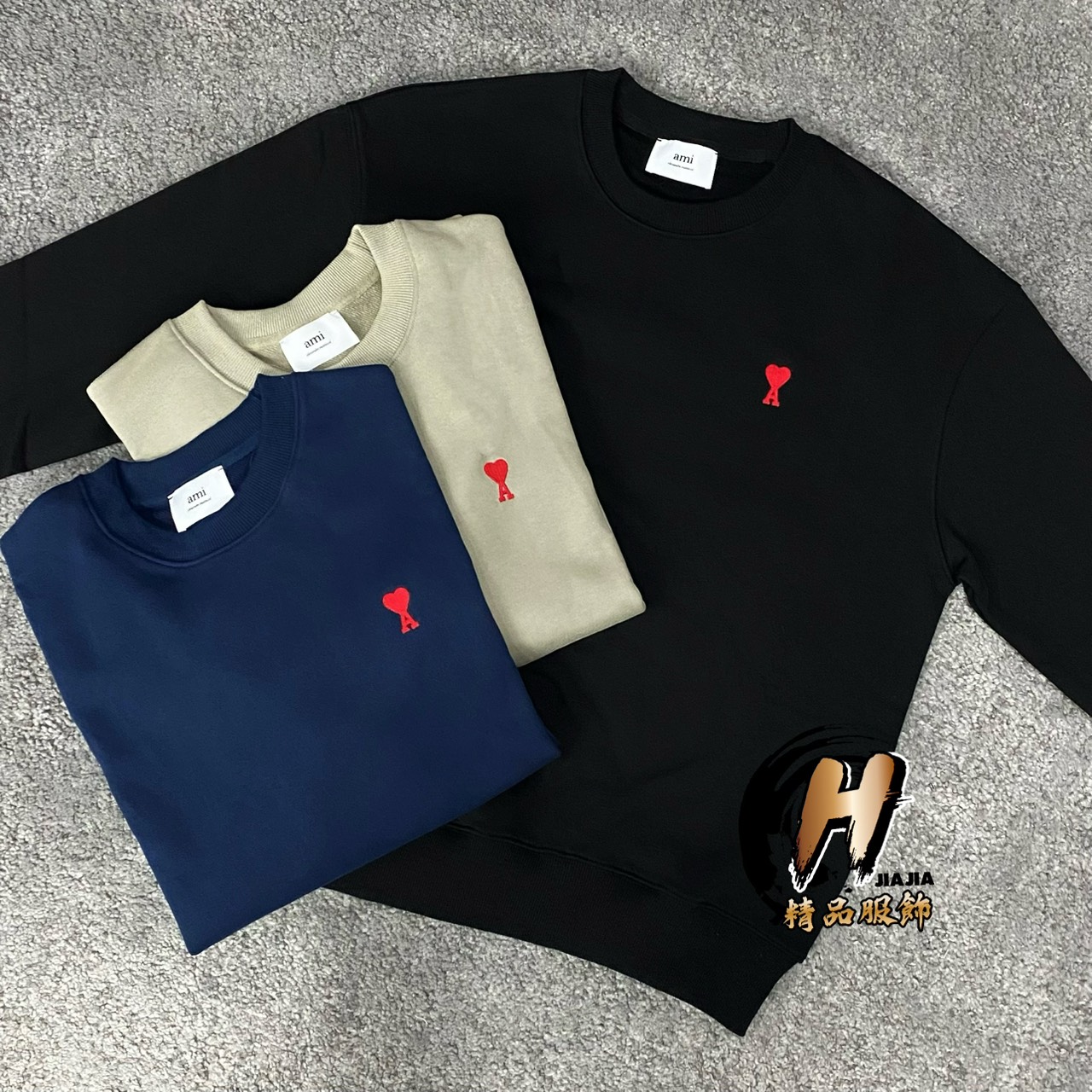 AMI PARIS 經典刺繡小Logo 紅愛心 長袖 衛衣/大學T