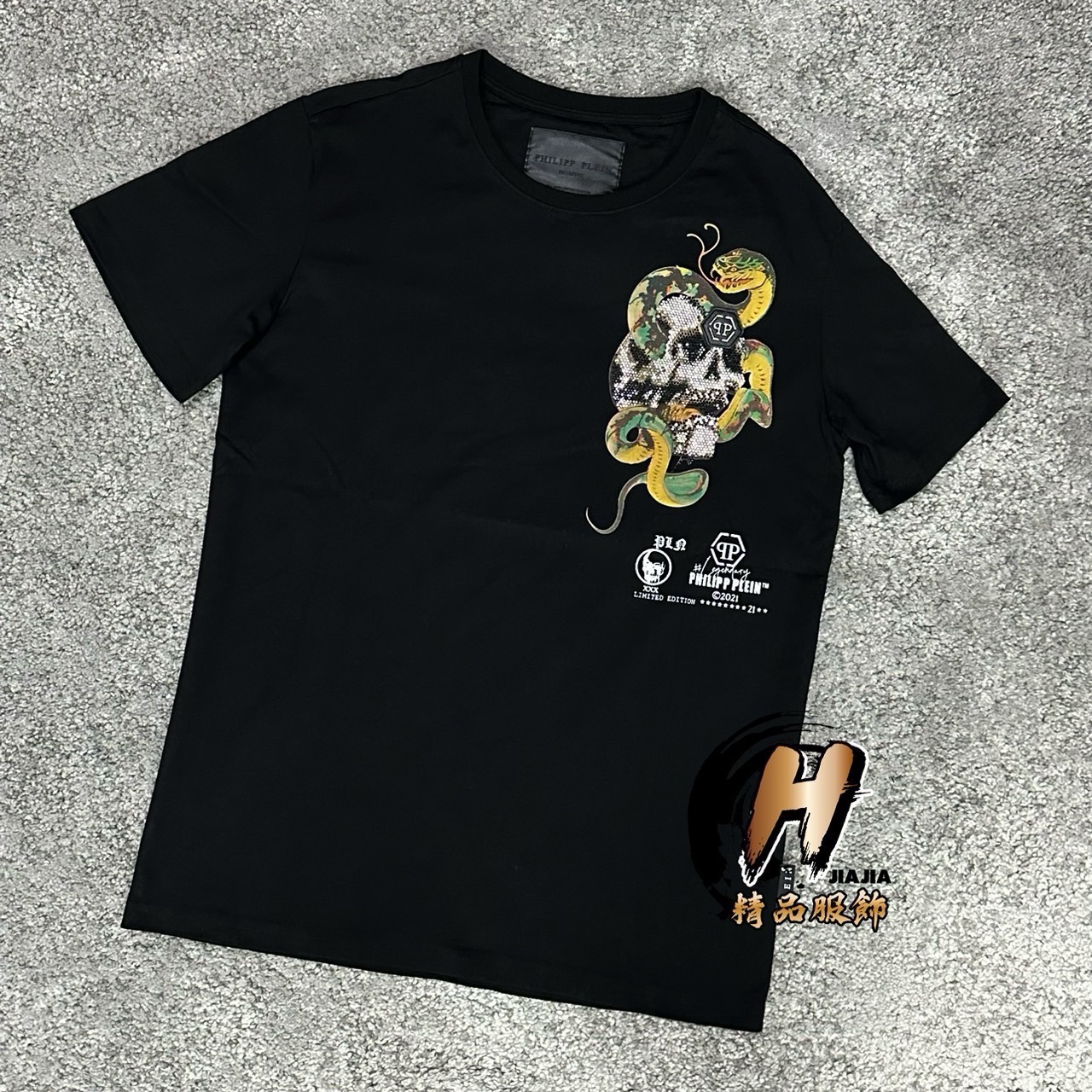 PHILIPP PLEIN PP 立體水鑽 骷顱Logo 黑色 短袖✅正品代購