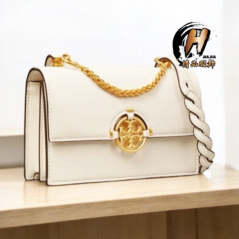 TORY BURCH TB MILLER雙T金字Logo 真皮翻蓋鏈條 米白色 手提斜背包✅正品代購