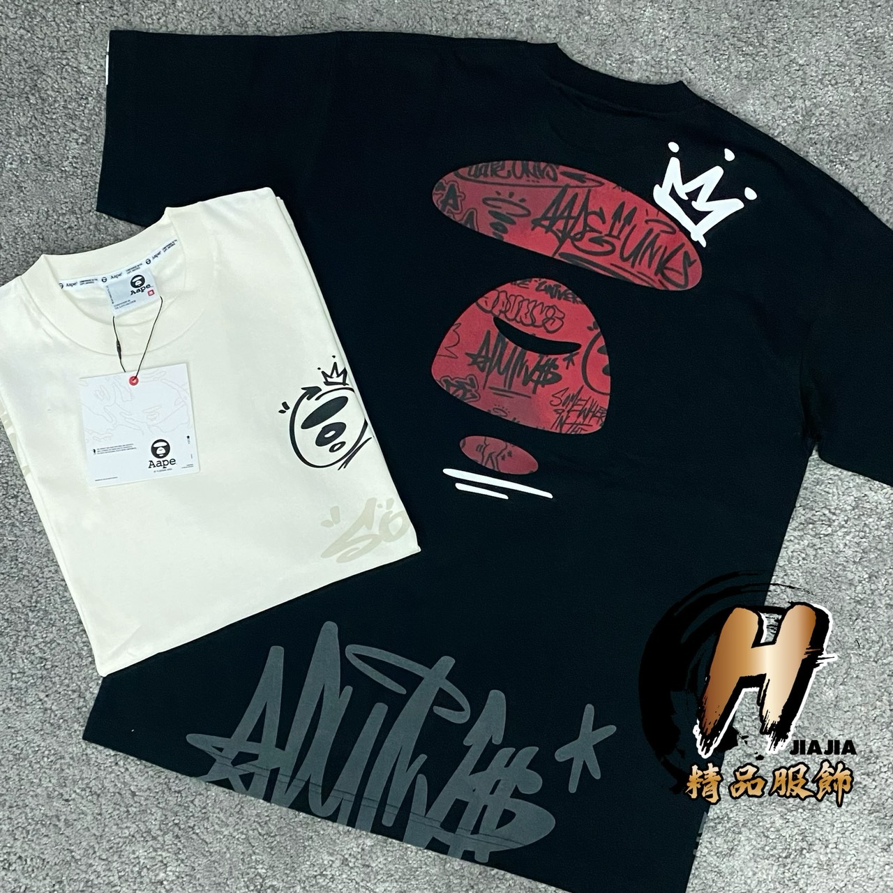 AAPE 新款 塗鴉猿人Logo 皇冠猿人系列 黑色/白色 短袖✅正品代購
