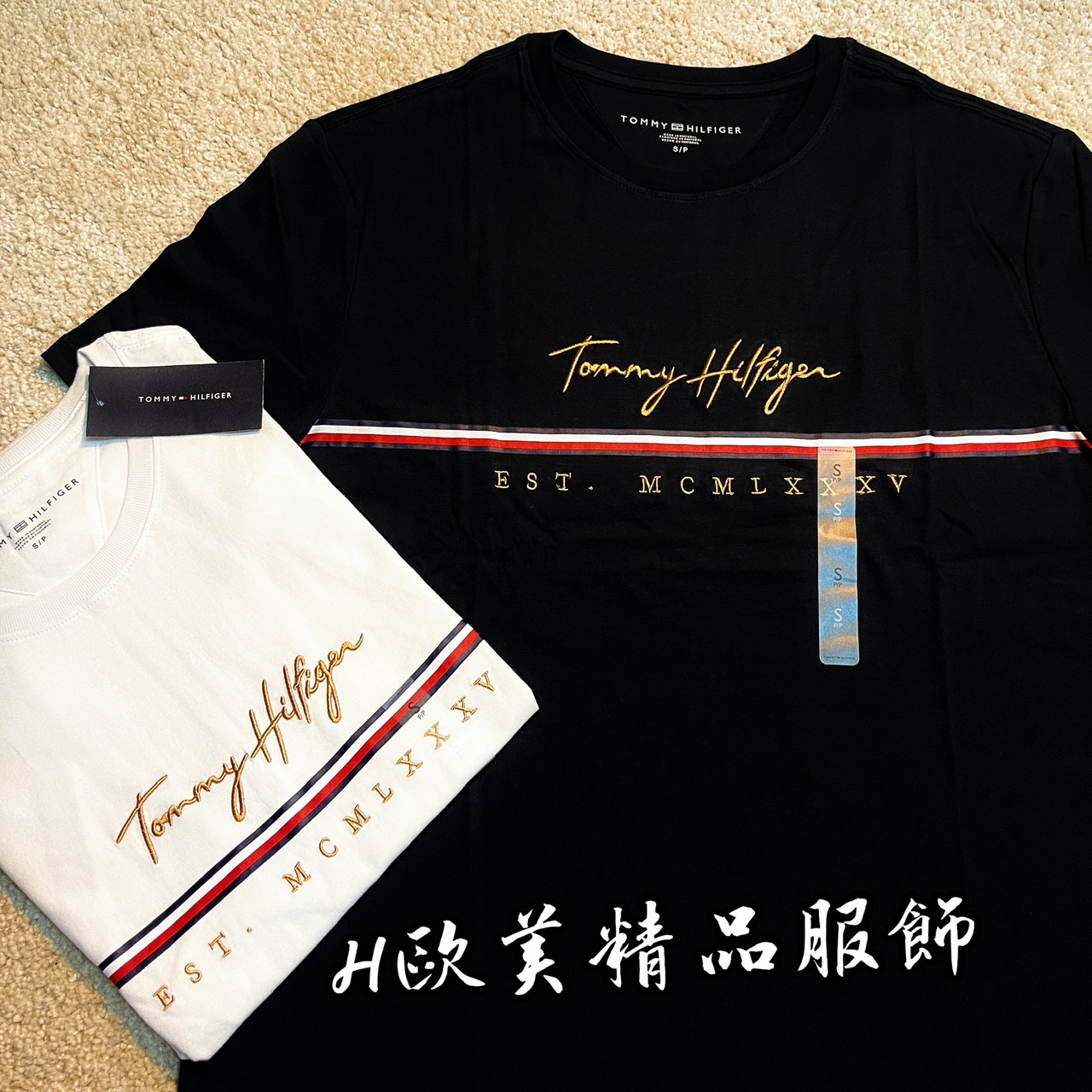 Tommy Hilfiger 男版 新款 金色刺繡文字 黑/白 短袖✅正品代購