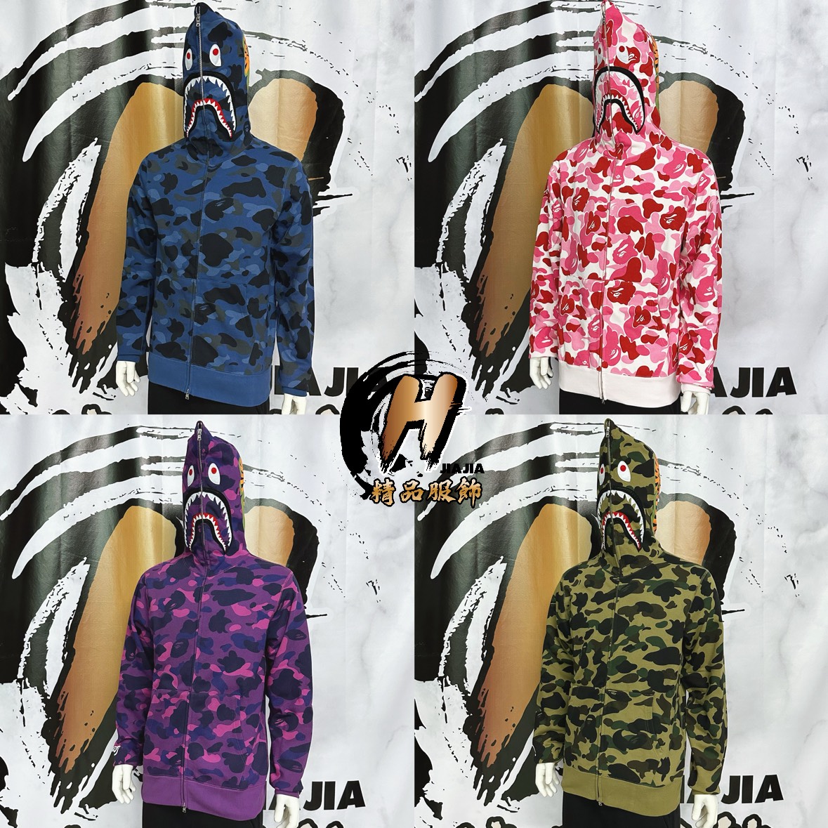 BAPE 經典3D立體 鯊魚頭 滿版迷彩 熱門款 連帽外套✅正品代購