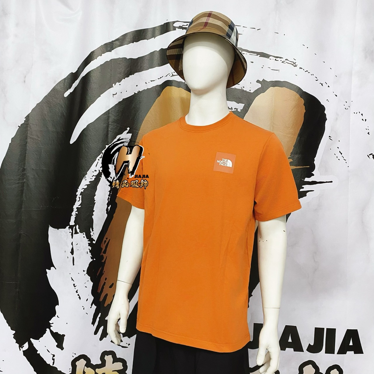The North Face 北臉 胸前經典小標 背後大LOGO 橘色/白色 短袖