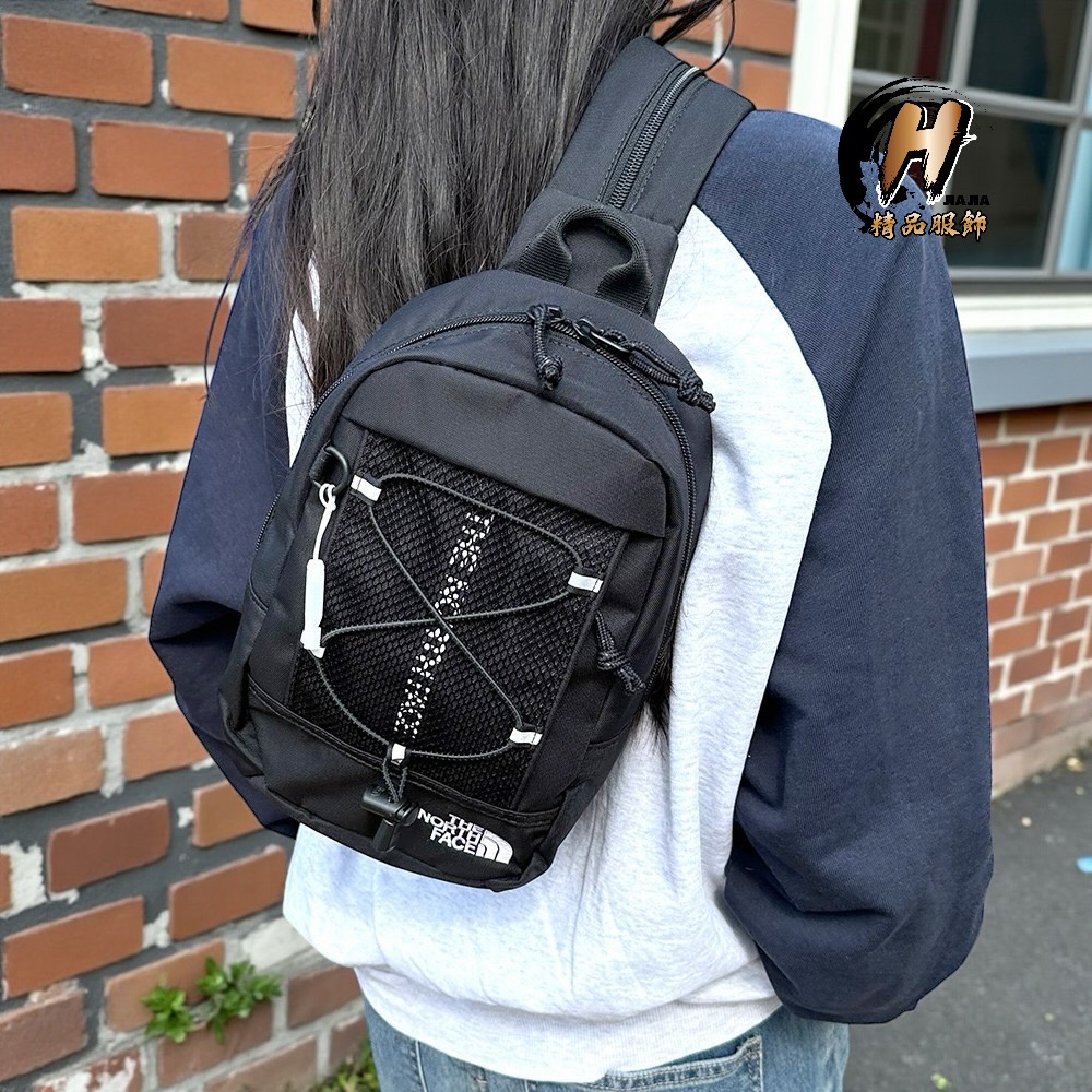 The North Face 北臉 經典刺繡小標 多功能網眼 黑色 斜背包 後背包