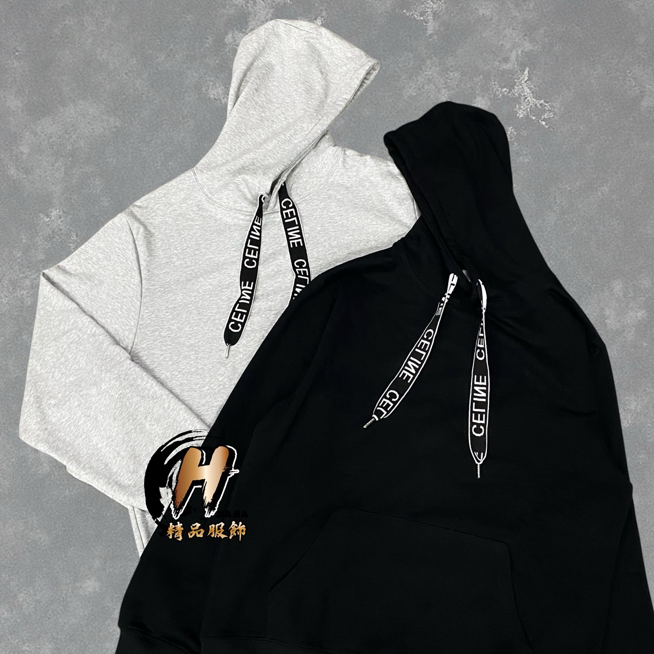 CELINE 經典緞帶抽繩字母 素面 長袖 帽T