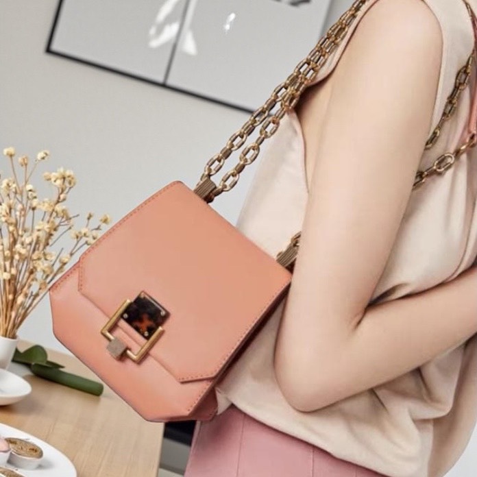 CHARLES & KEITH 小CK 桃紅色皮革 鏈條肩背包
