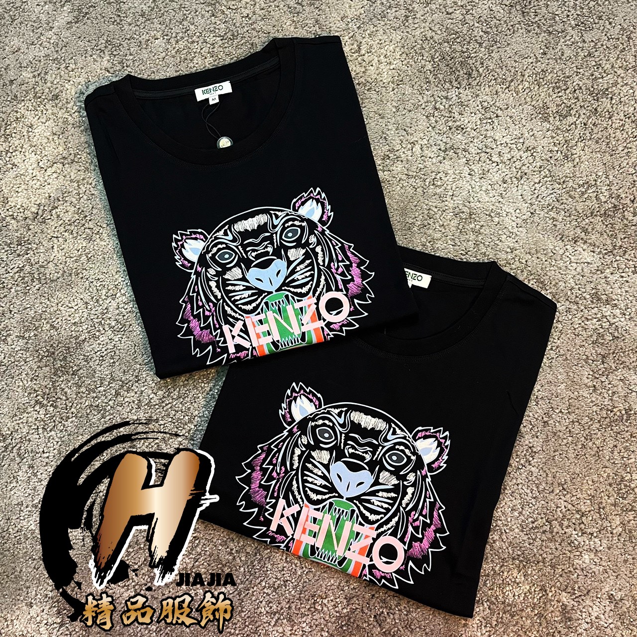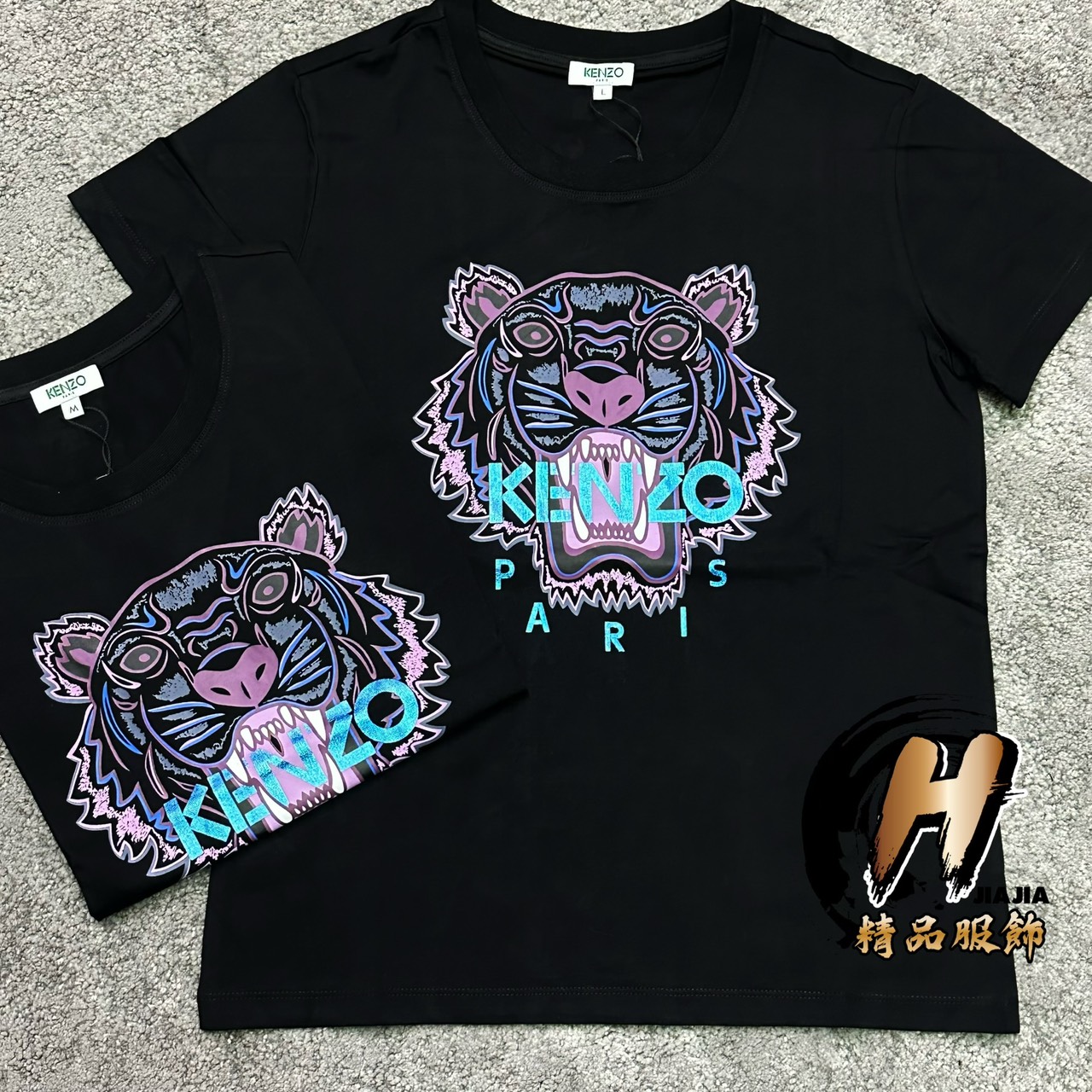 KENZO 高田賢三 女版 經典藍紫反光款 虎頭 黑色 短袖