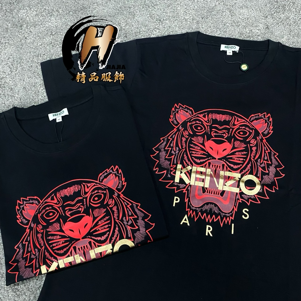 KENZO 高田賢三 經典Logo 燙金文字款 紅虎頭 黑色 短袖