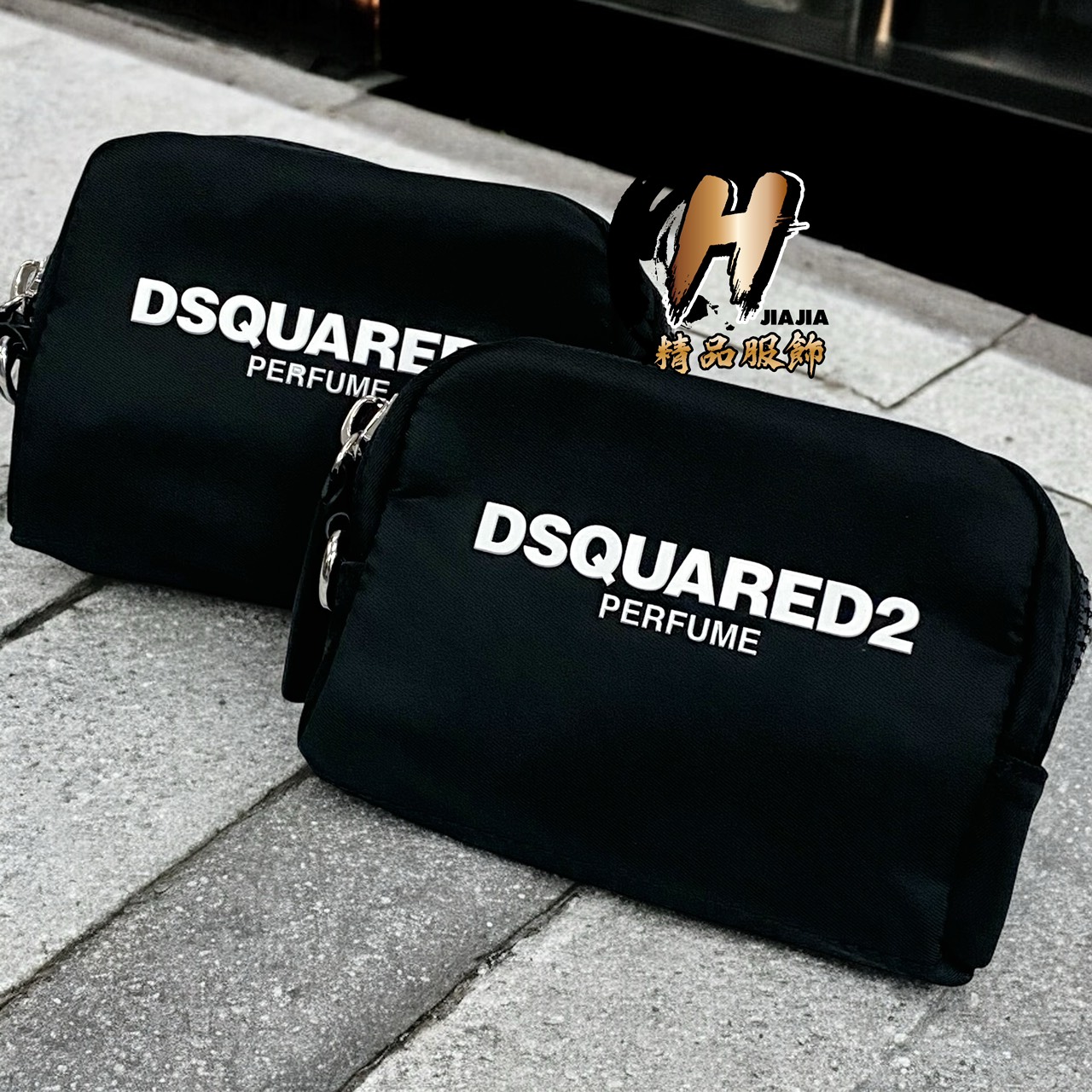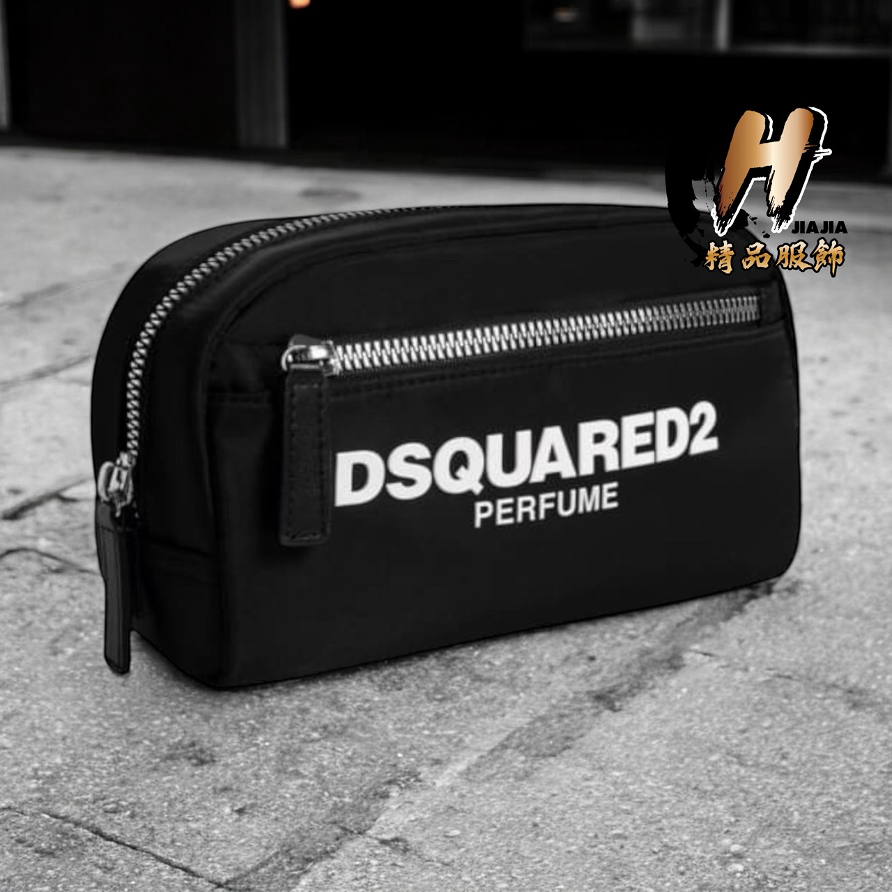 DSQUARED2 D2 浮雕立體Logo 經典文字款 多功能 黑色 手拿包 收納包✅現貨秒發