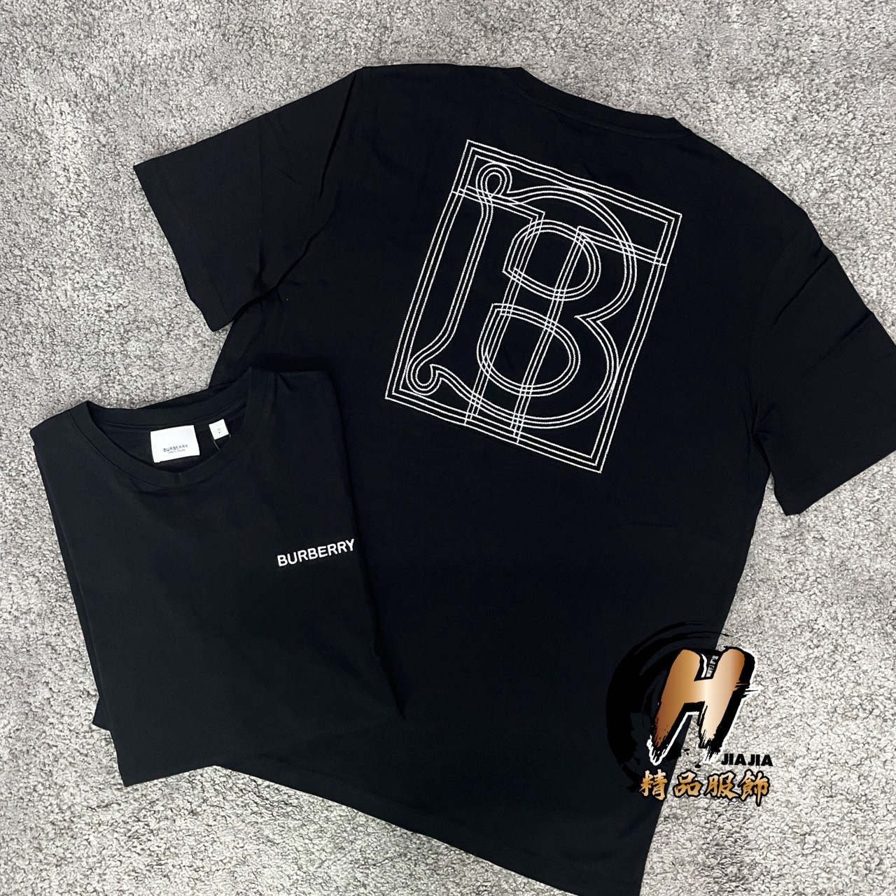 BURBERRY 經典刺繡小Logo 背後大TB 黑色 短袖