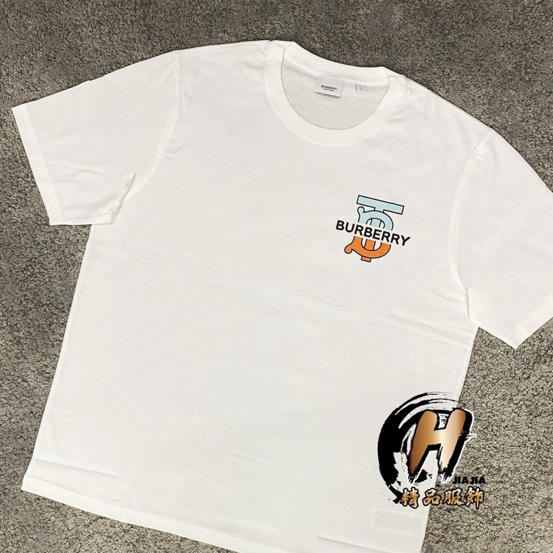 BURBERRY TB 經典藍橘小Logo 白色 短袖
