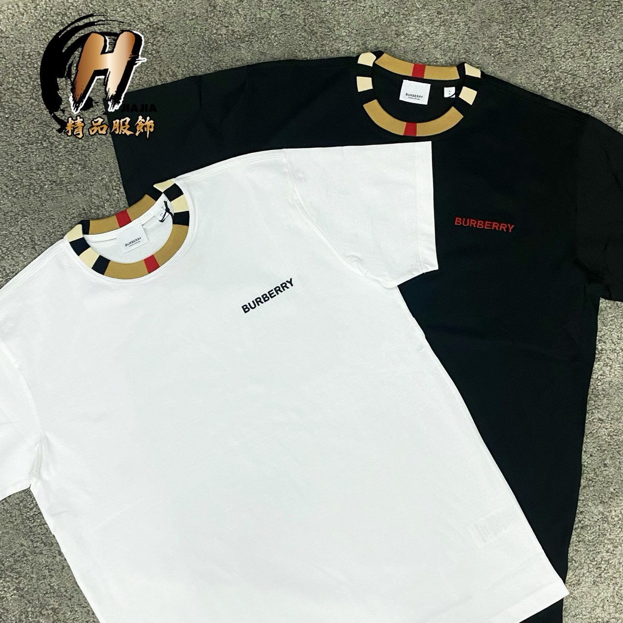 BURBERRY 經典領口格紋 胸前刺繡小Logo 黑/白 短袖✅正品代購