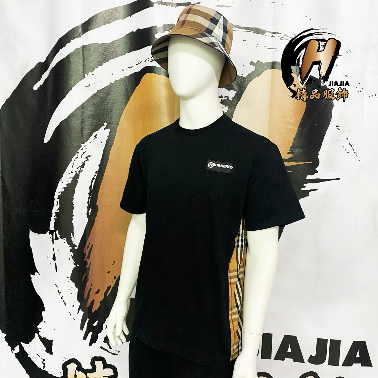BURBERRY 胸前立體小Logo 側邊格紋 黑色 短袖✅出清福利價