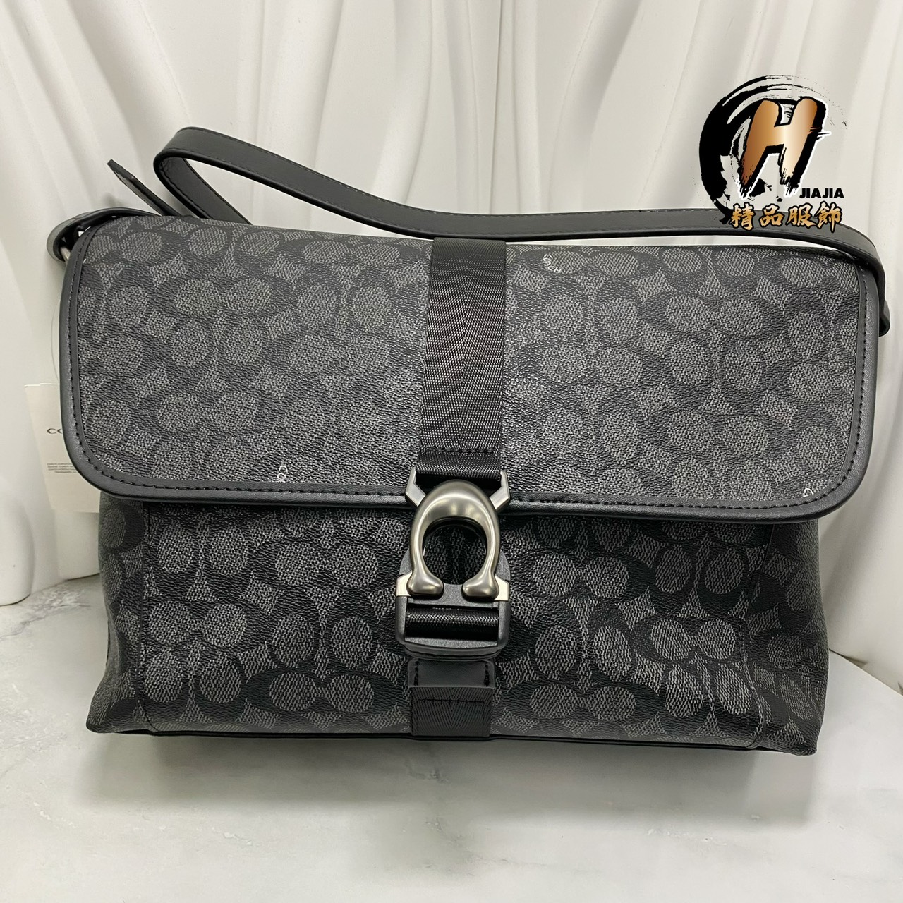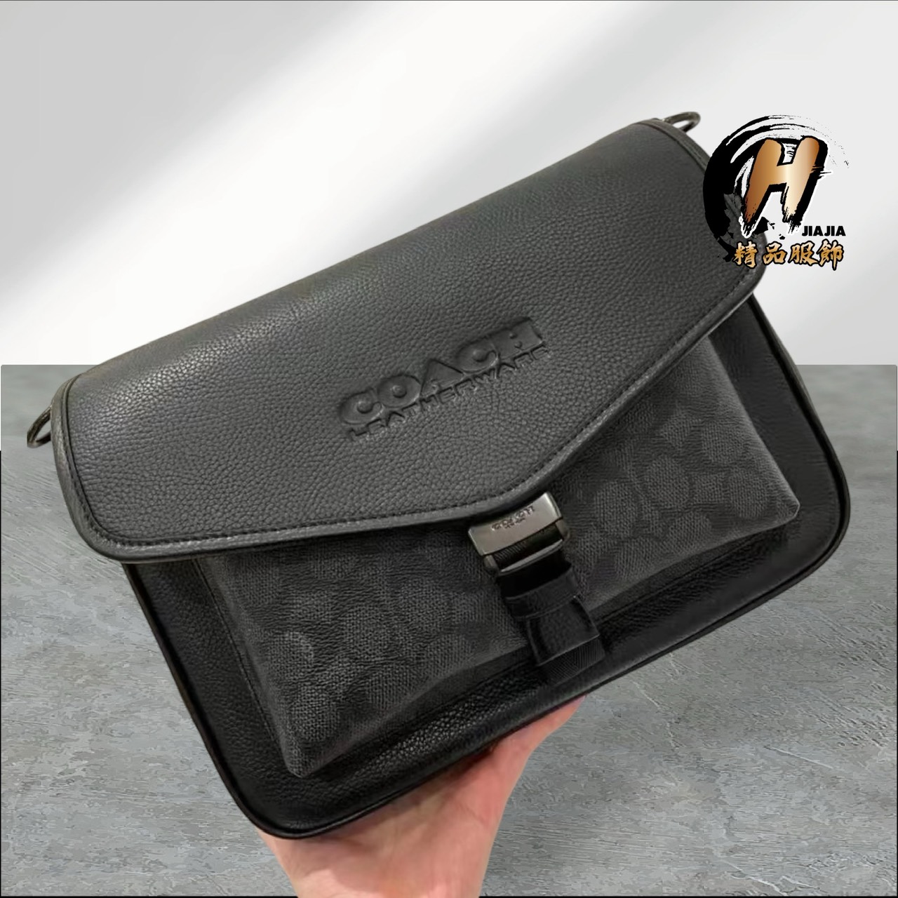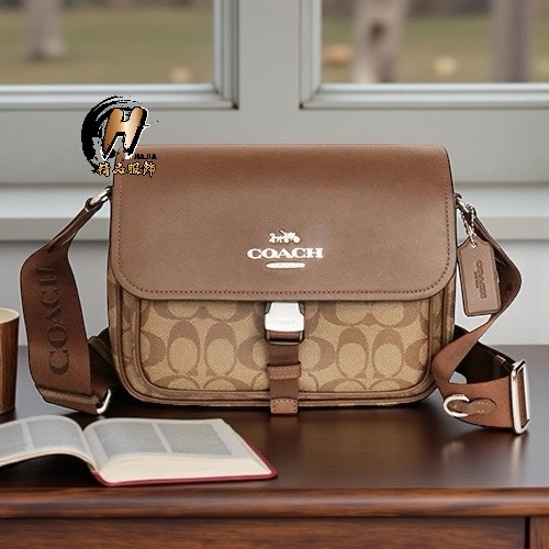 COACH 新款CHARTER經典老花拼色款 牛皮掀蓋 郵差包 斜背包