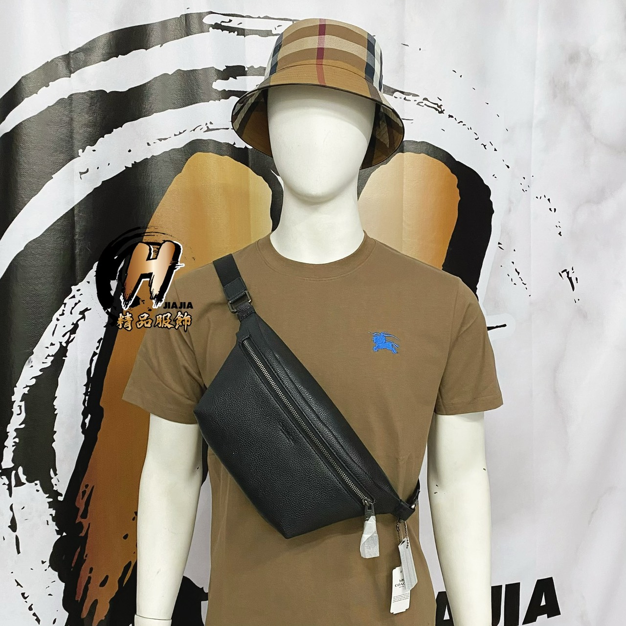 COACH 經典壓印小LOGO 素面 黑色 男款 腰包 胸包