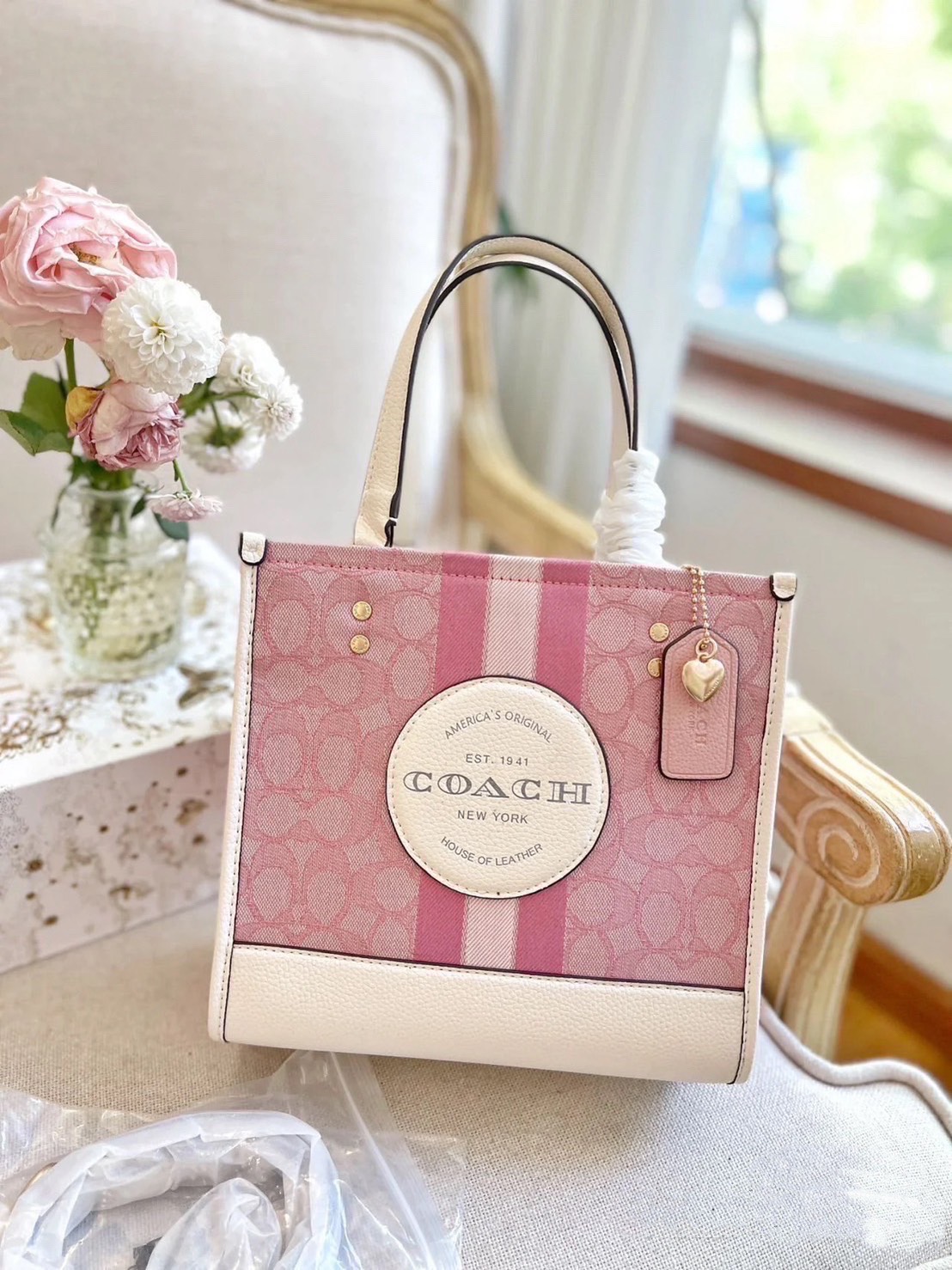 COACH 專櫃限定款 粉色拼接 香布蕾 小托特包 斜背包✅正品代購