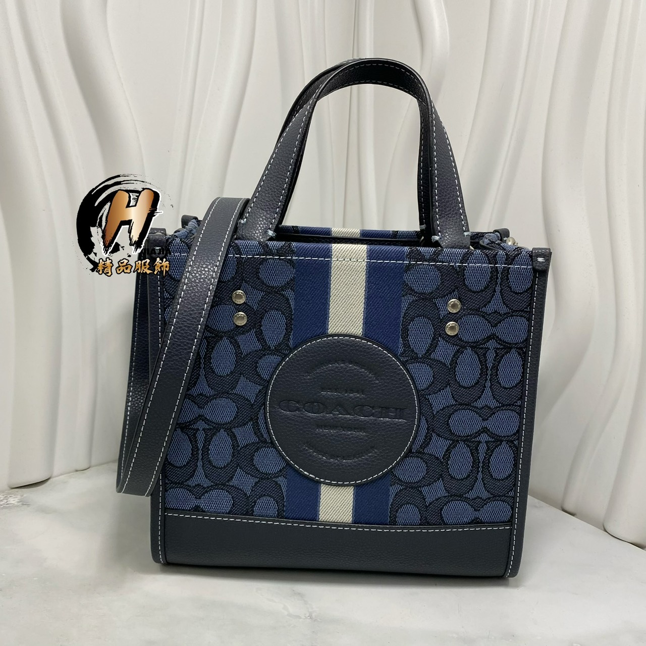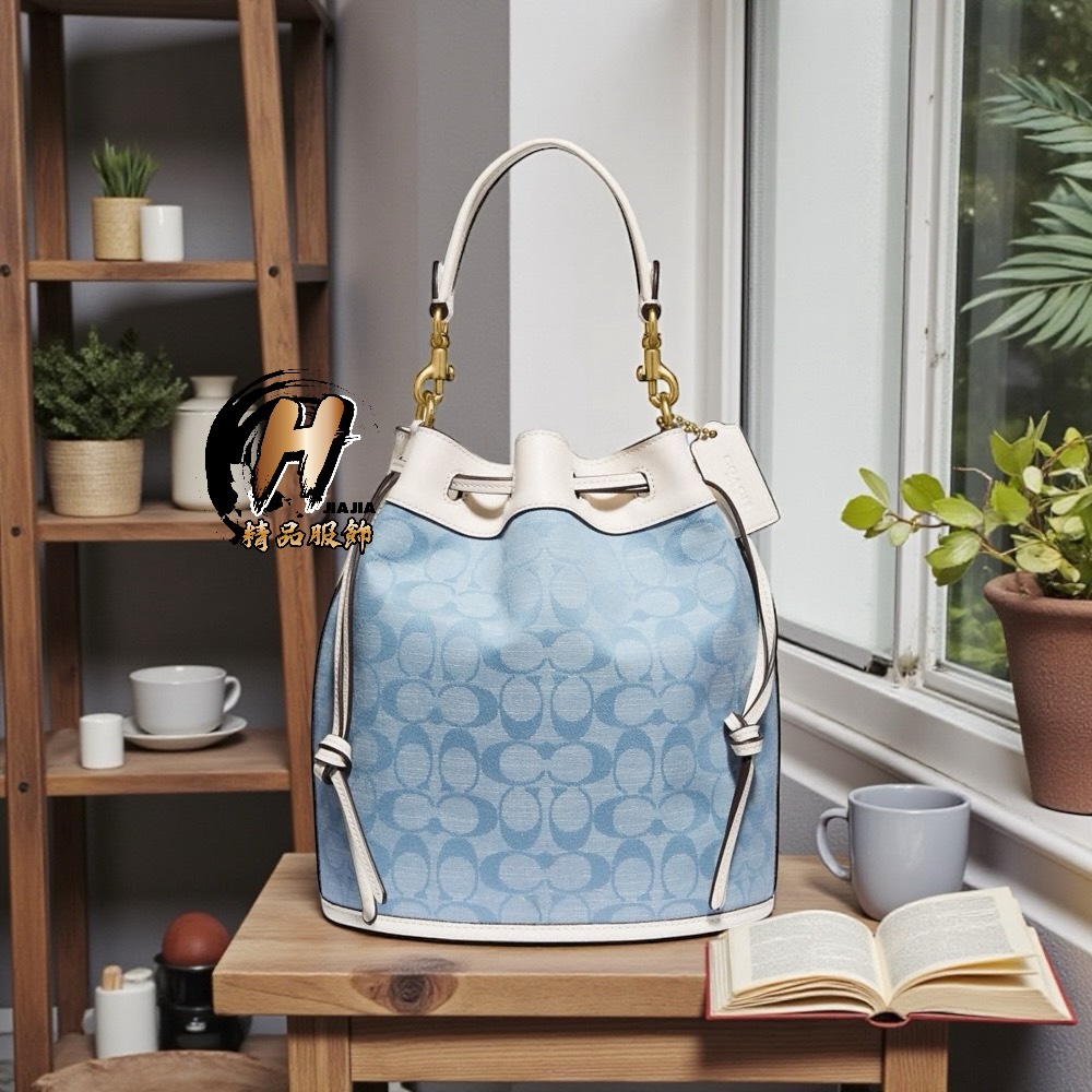 COACH 新款FIELD丹寧牛仔 Bucket Bag 香布蕾 藍白 水桶包 斜背包