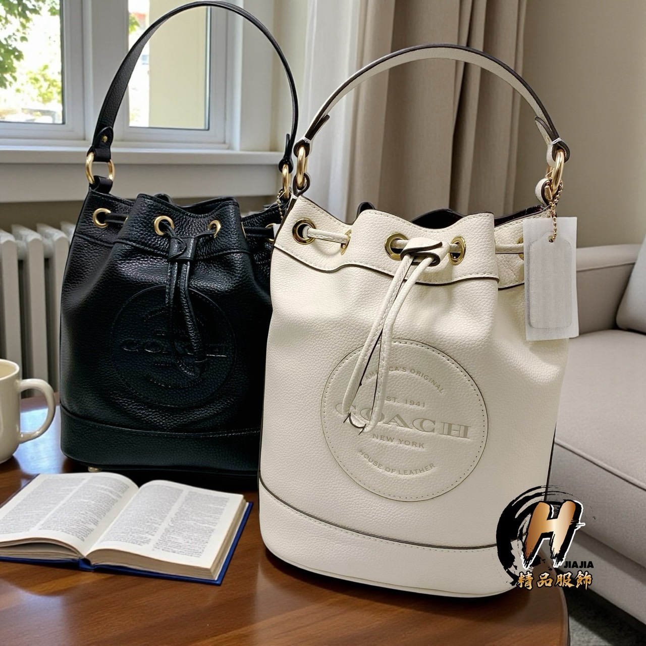 COACH 新款Dempsey 22 經典素面荔枝紋 牛皮 抽繩 水桶包 單肩斜背包