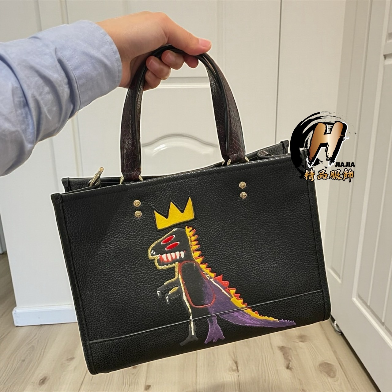 COACH 新款Basquia 聯名塗鴉恐龍Logo 黑色手提包