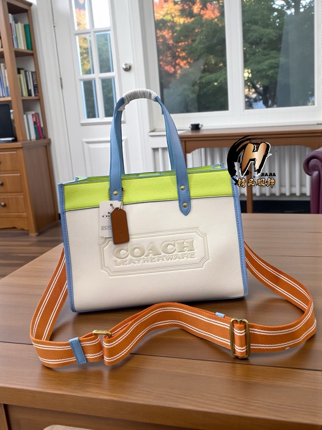 COACH 新款 field tote 30 徽章撞色款 奶油白綠 托特包 單肩斜背包