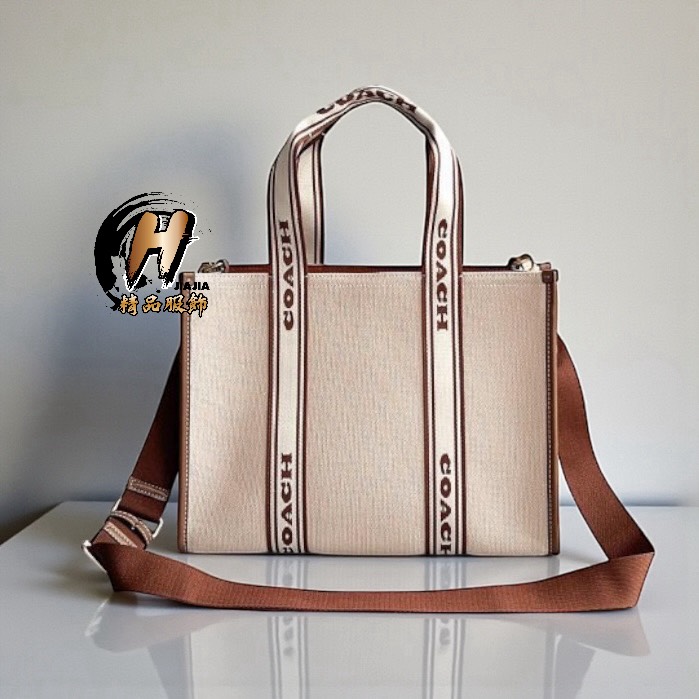 COACH 新款SMITH TOTE 34帆布拼皮 奶茶白 大款 手提托特包 斜背包