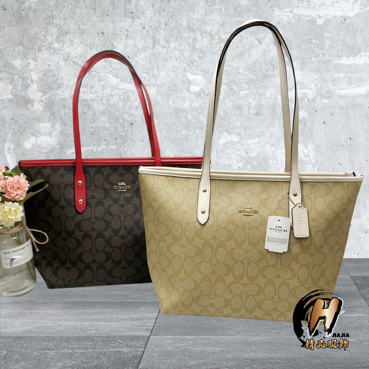 COACH 新款 CITY 滿版老花Logo 防刮皮革 托特包