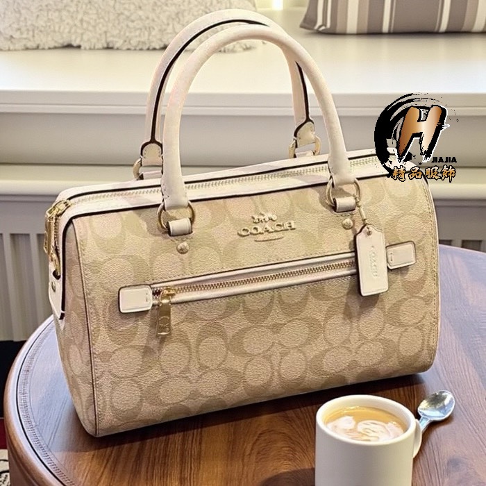 COACH 新款ROWAN 經典老花 立體馬車 波士頓 卡其白 手提包 斜背包