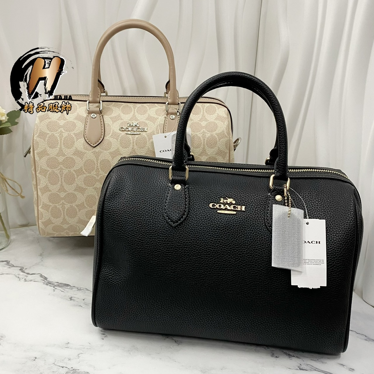 COACH 新款ROWAN 經典老花 立體馬車 波士頓 黑色/奶茶色 手提包 斜背包