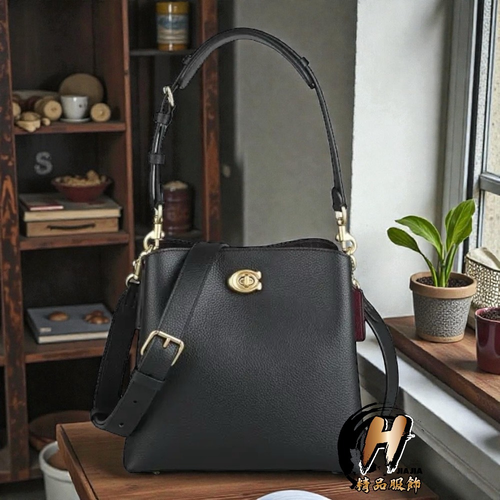 COACH 新款 Willow 復古立體C字LOGO 牛皮 手提單間水桶包 斜背包