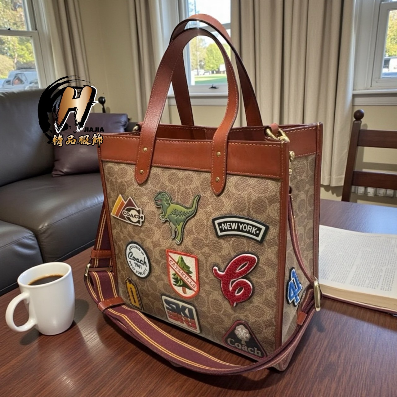 COACH 新款FIELD 經典SIGNATURE 徽章 手提托特包 斜背包