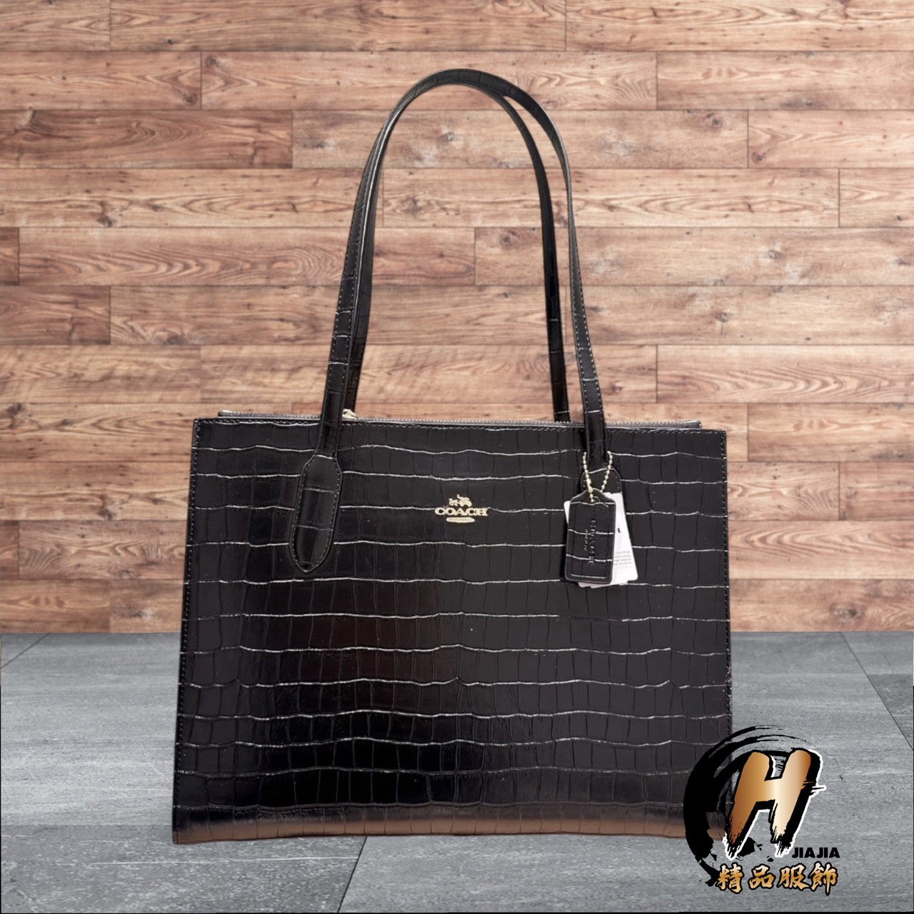 COACH 新款NINA經典立體Logo 鱷魚紋 雙拉鏈 牛皮 托特包