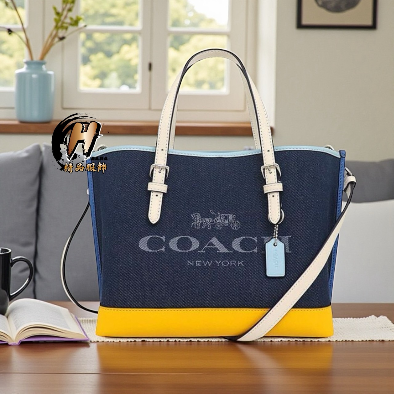 COACH 新款 Mollie 拼色 牛仔 小號 托特包 斜背包