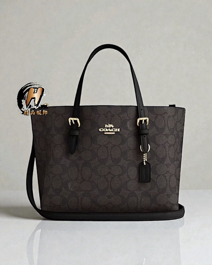 COACH 新款 經典Mollie 25 滿版老花 素面黑 小托特包 手提斜背包