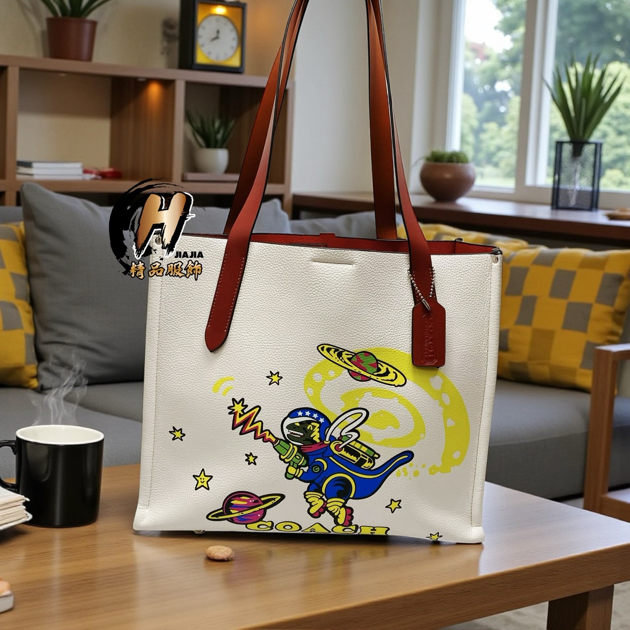 COACH 新款 RELAY恐龍宇宙太空系列 白色 托特包 手提包