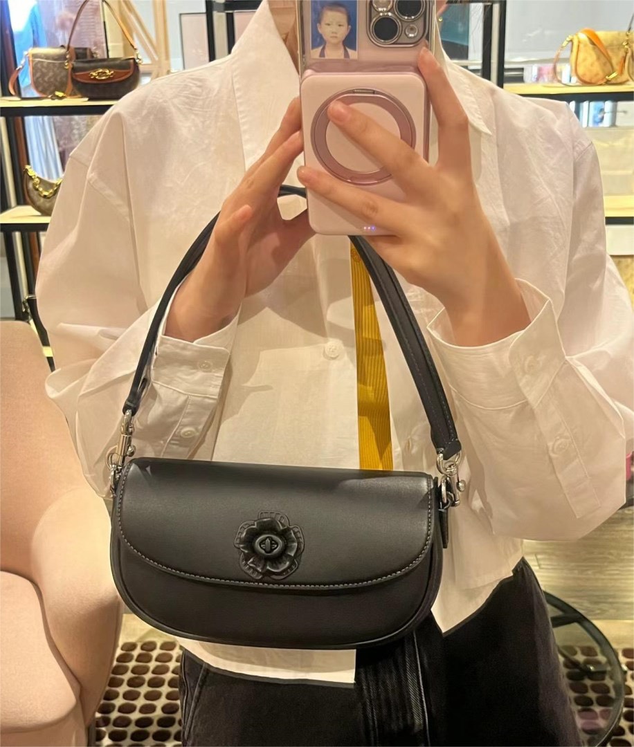 COACH 新款 EMMY23山茶花 黑色 馬鞍包 腋下包 斜背包
