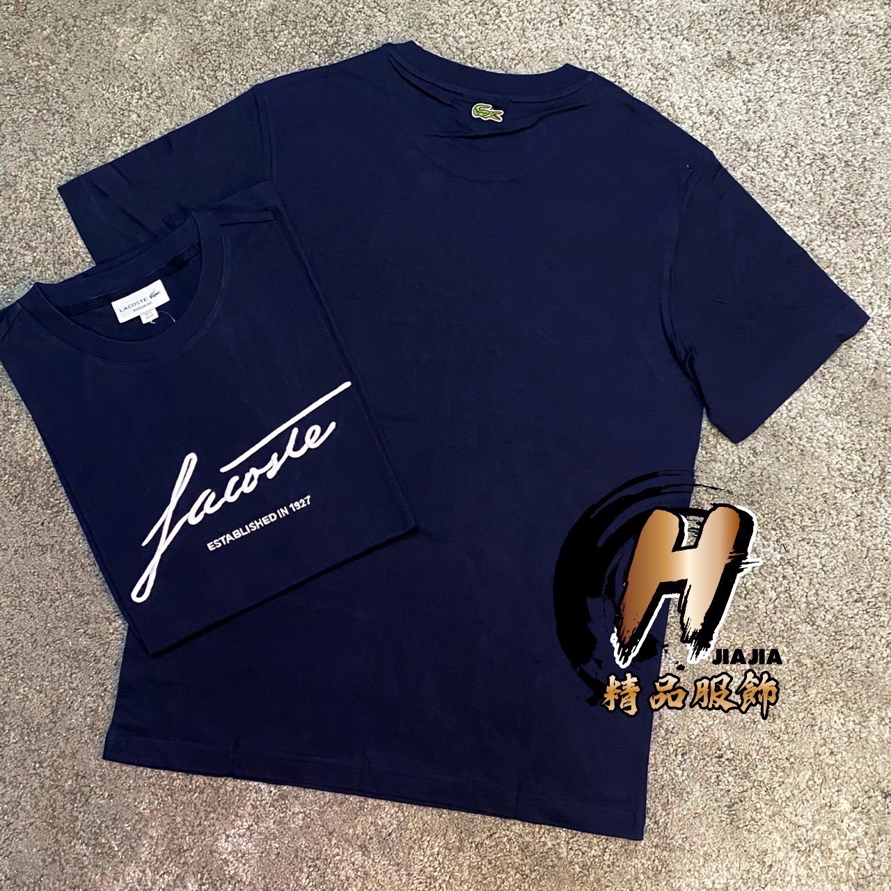LACOSTE🐊鱷魚 刺繡 草寫文字款 經典熱銷 深藍色 短袖