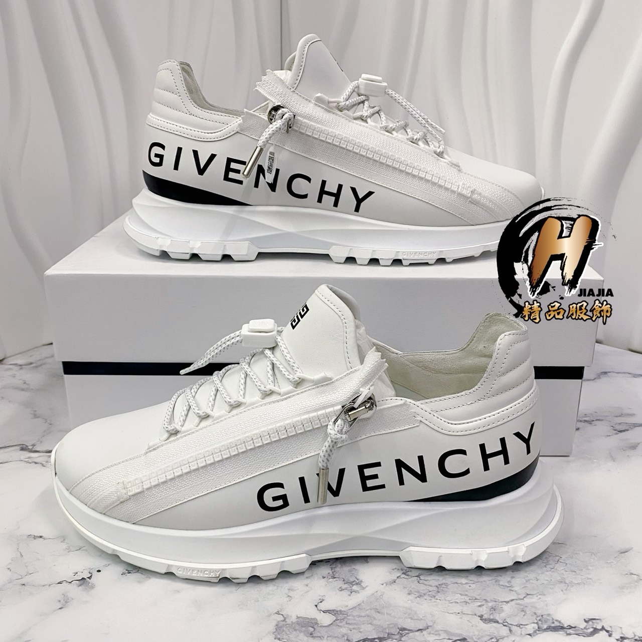 GIVENCHY 紀梵希 側邊文字 拉鍊皮革 白色 運動鞋✅正品代購