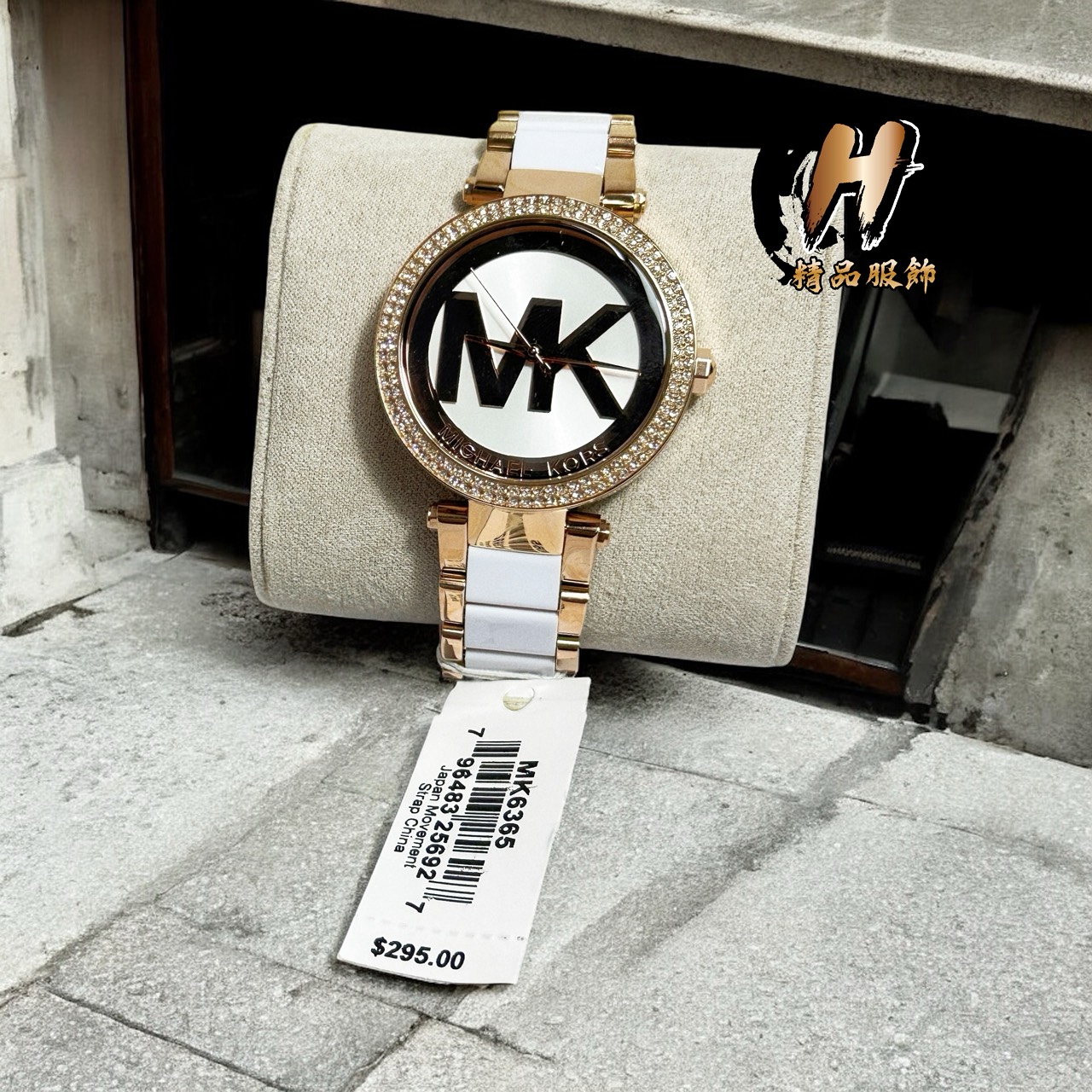 MICHAEL KORS MK 晶鑽外框 經典LOGO 三眼計時 玫瑰金白 手錶 MK6365