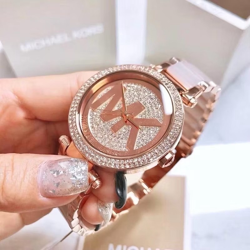 MICHAEL KORS MK 晶鑽外框 經典LOGO 玫瑰金粉 腕錶 MK6176✅正品代購