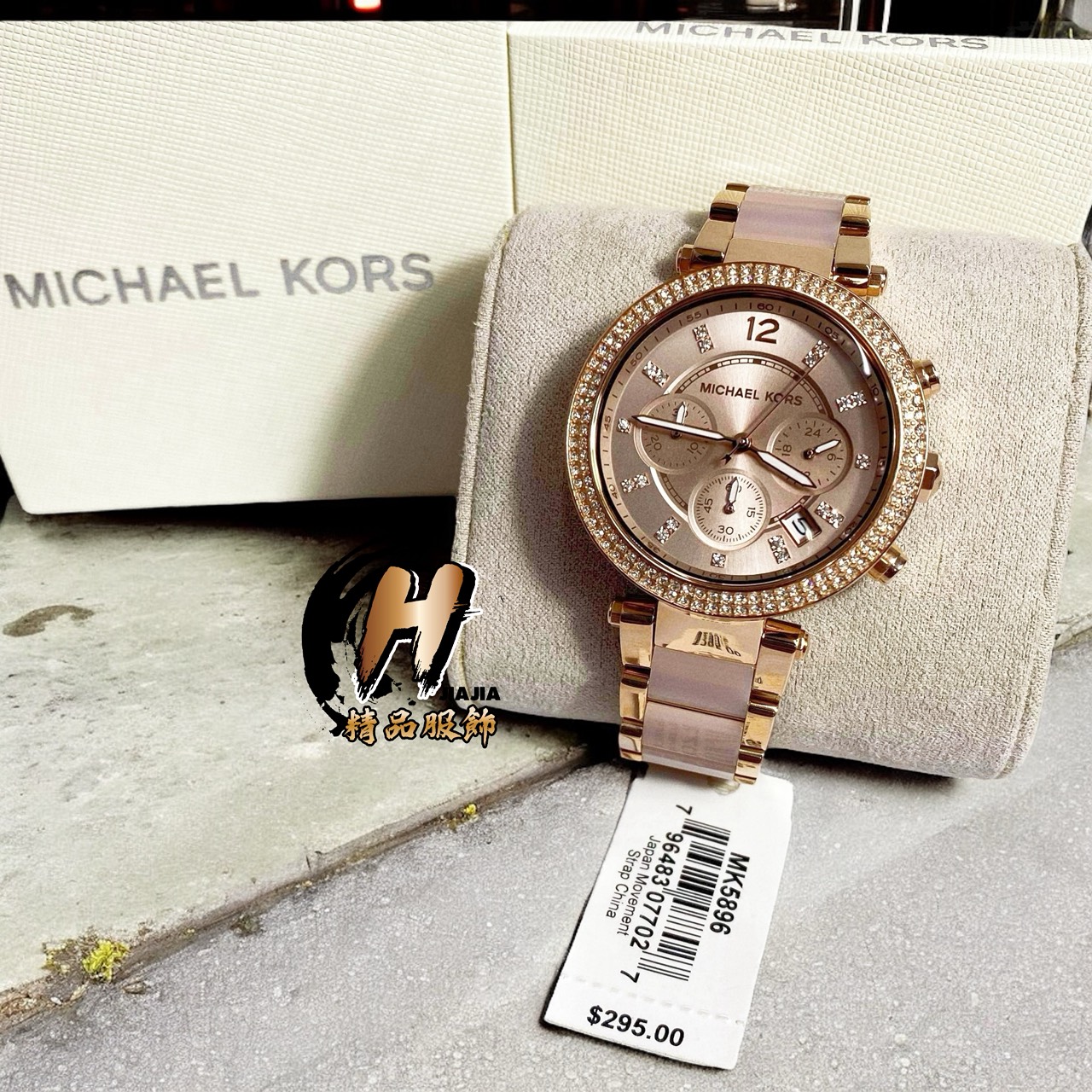 MICHAEL KORS MK 滿鑽 玫瑰金粉 三眼女錶 手錶 MK5896