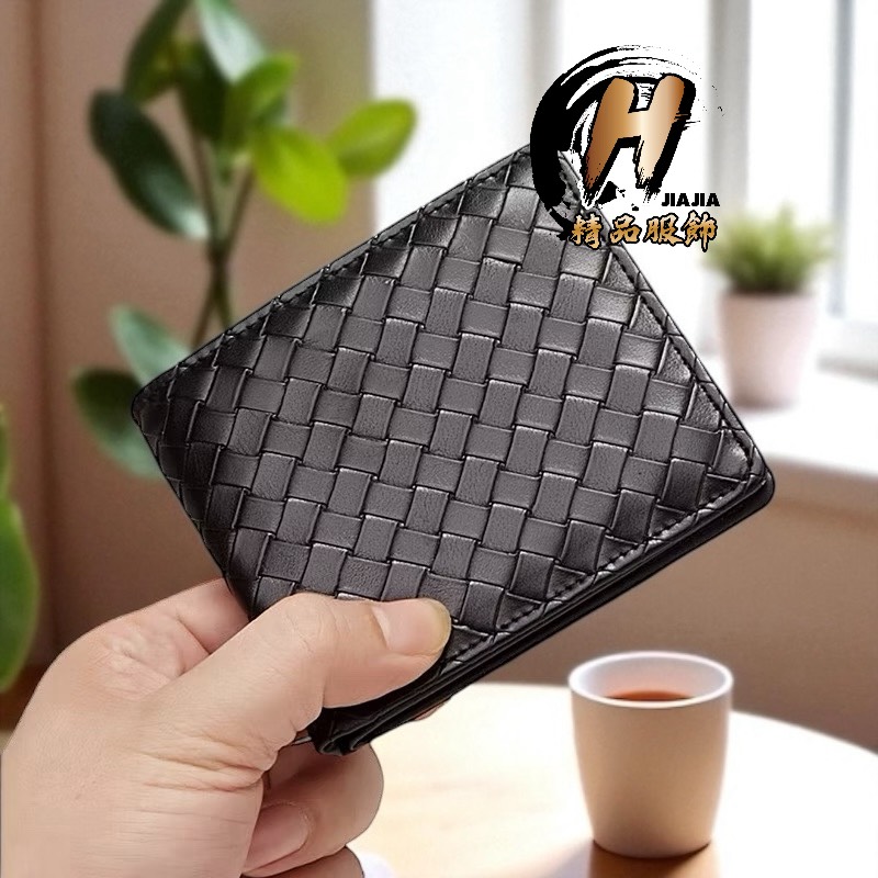 義大利 PAGANI DESIGN 經典菱格紋 黑編織 短夾