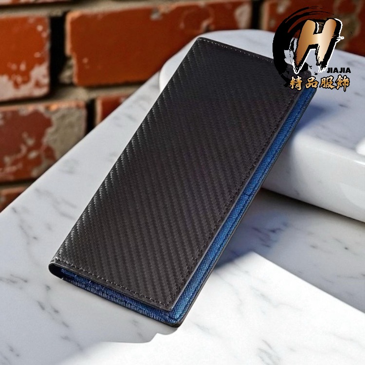 義大利 PAGANI DESIGN 碳纖維紋 黑藍 掀蓋式 對折長夾