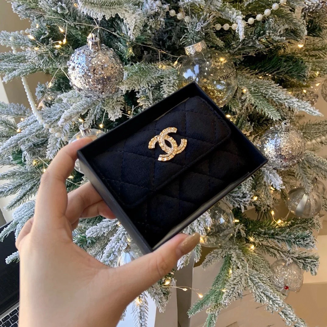 CHANEL 香奈兒VVIP 聖誕禮 水鑽立體標 絲絨 黑色 卡包 卡片夾