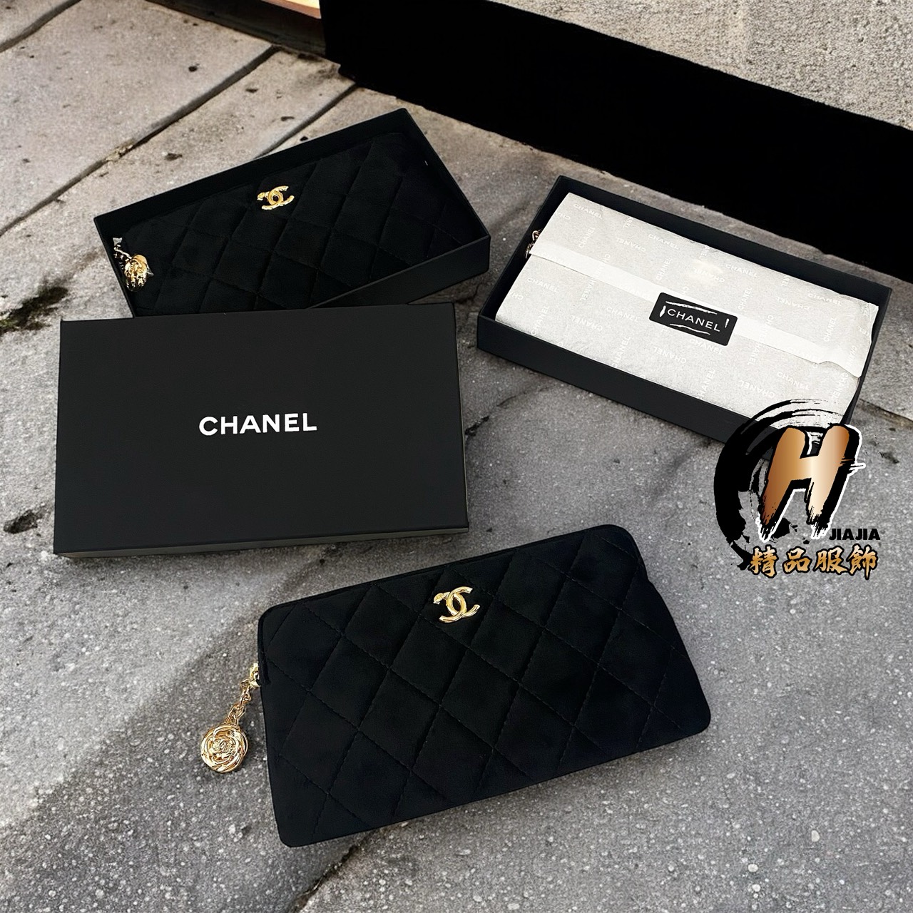 CHANEL 香奈兒 VIC生日禮 山茶花系列 黑金 絲絨 手拿包 收納包✅附盒裝