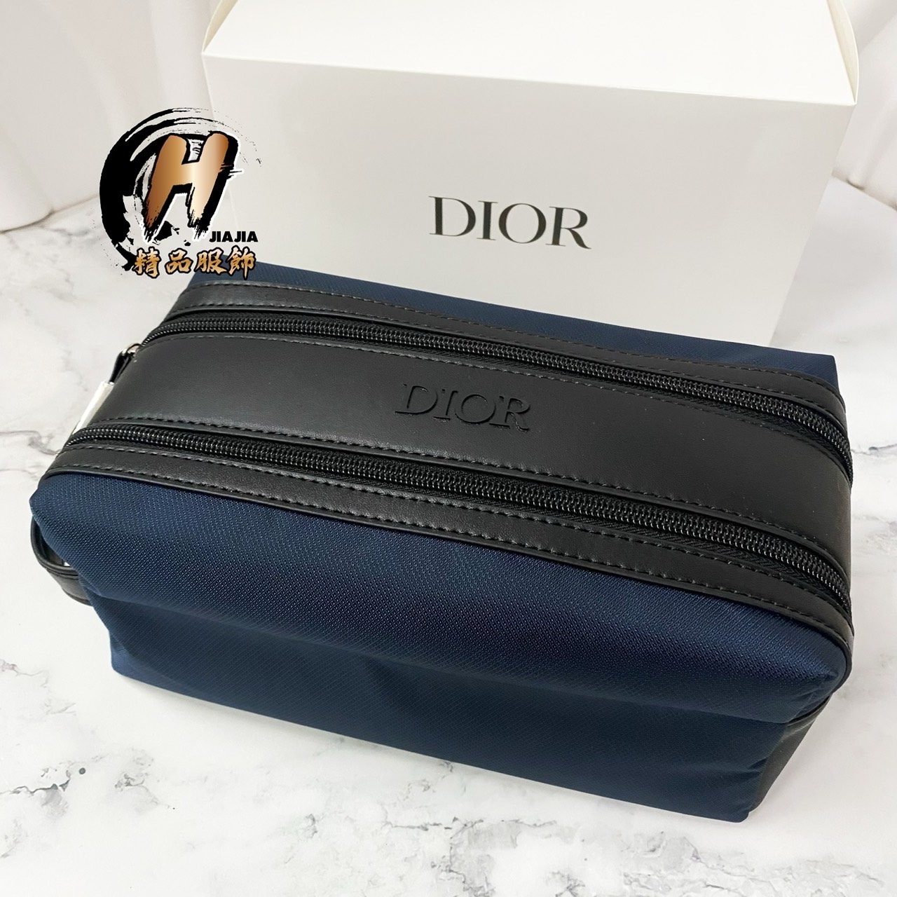 DIOR 迪奧 曠野之心 立體小標 滿額禮 雙拉鍊 深藍色 化妝包✅現貨秒發