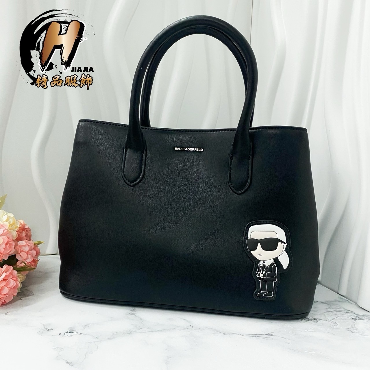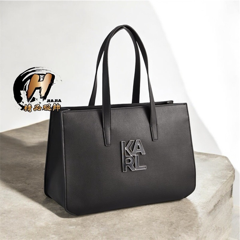 KARL LAGERFELD 專櫃新款 卡爾 經典立體Logo 老佛爺爺 牛皮 黑色 托特包
